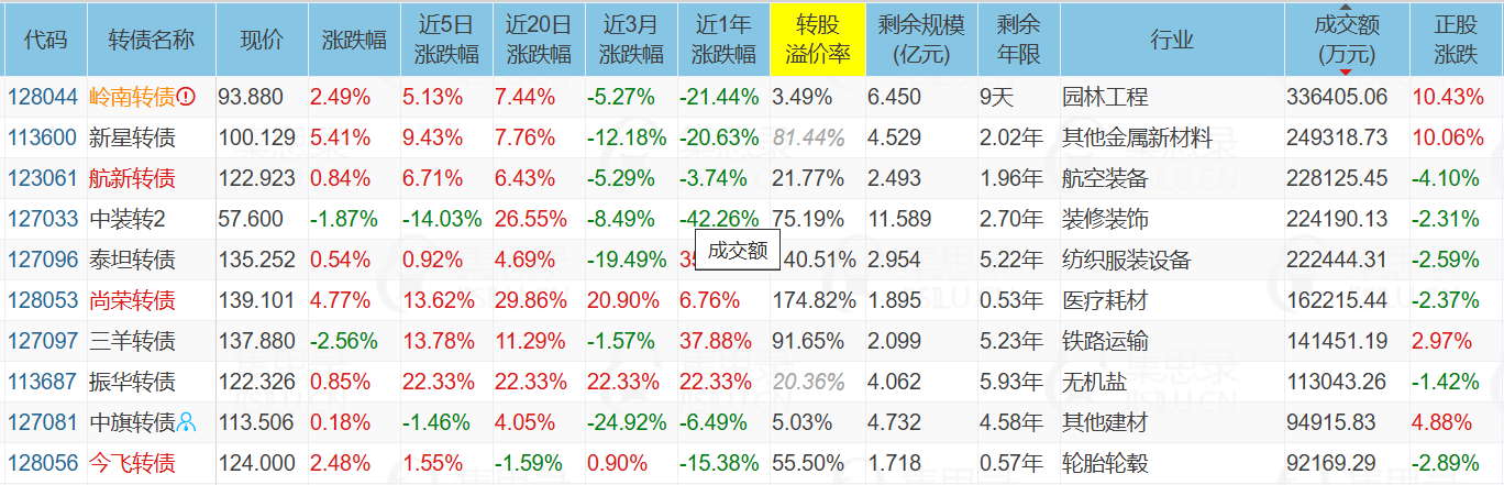 3、成交额榜前十