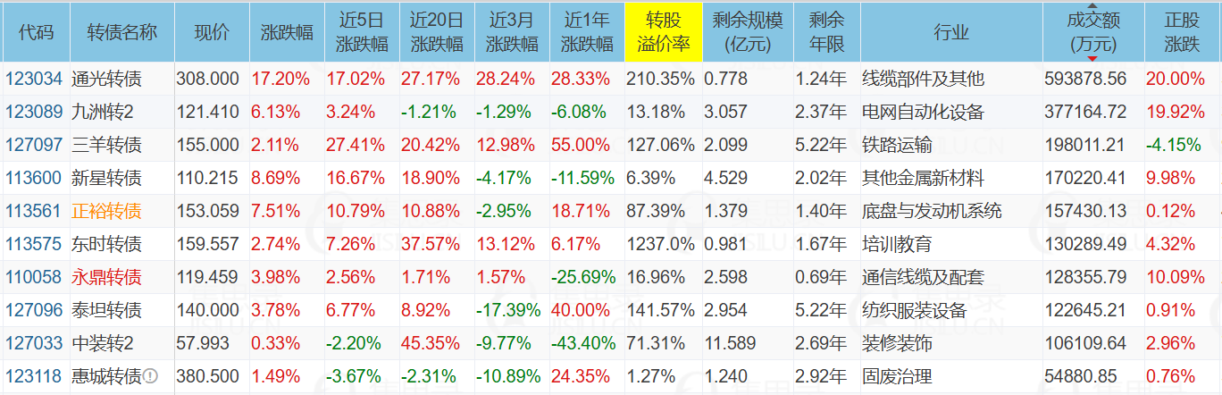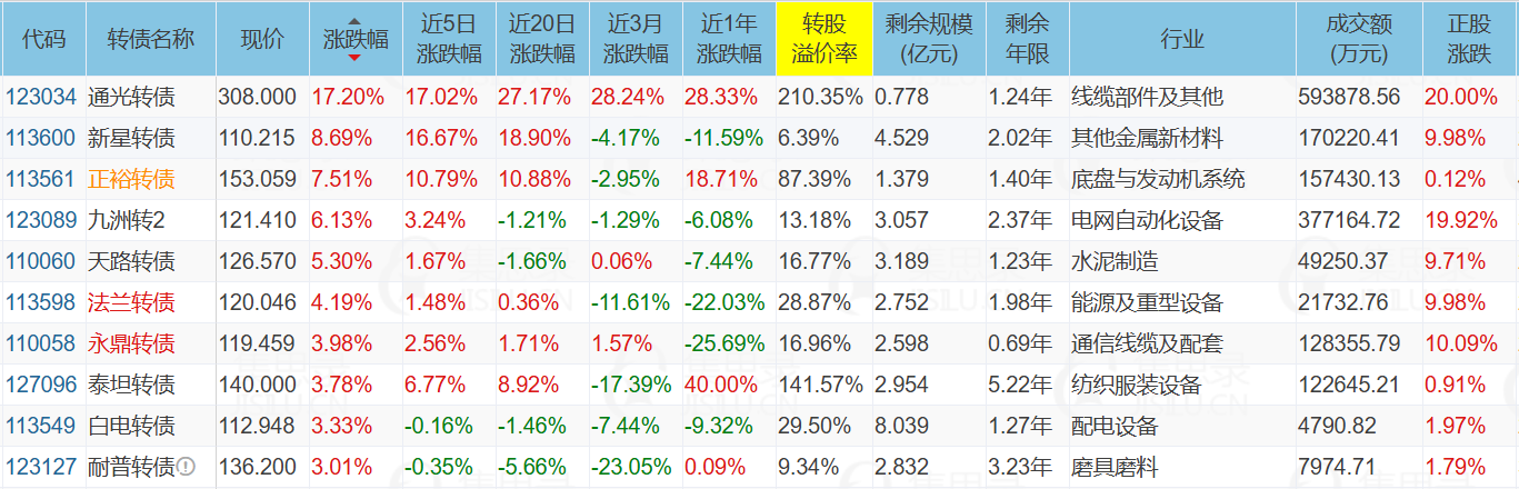 2)光纤概念+5.34%,理由:海外光纤公司LumenTechnologies连续大涨。代表债:通光转债、永鼎转债