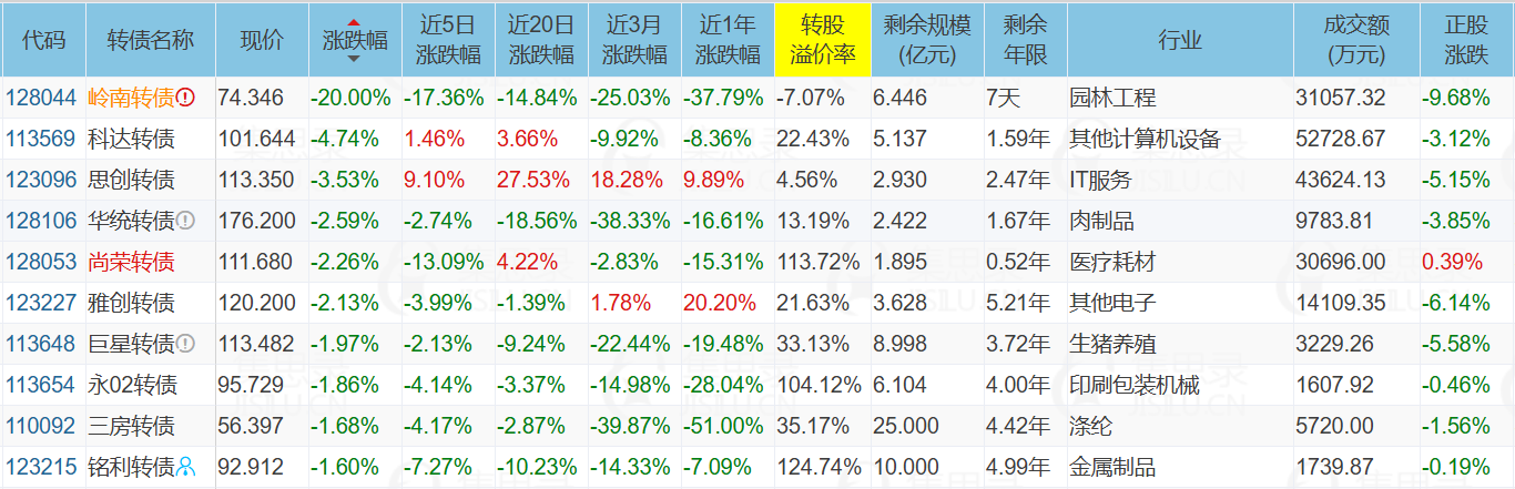2、跌幅榜前十
