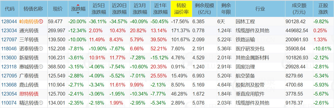 这两天正股和转债均连续跌停,转债价格58.477元,溢价率-17.56%,剩余规模6.385亿。我查了一下,虽然昨天溢价率就-7.07%了,但是并没有人转股。