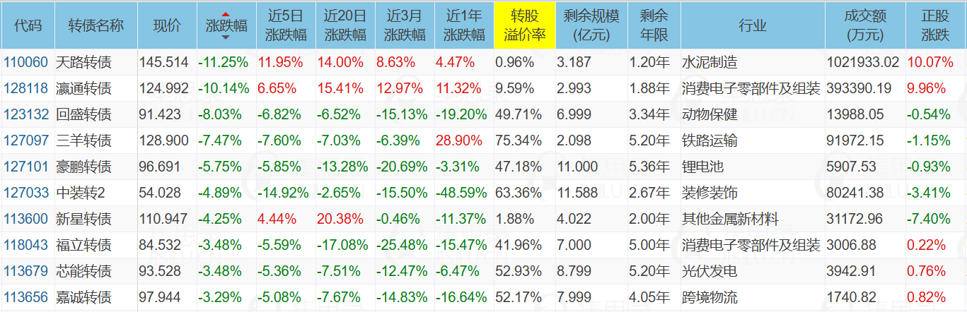 ✦今日跌停转债/正股: