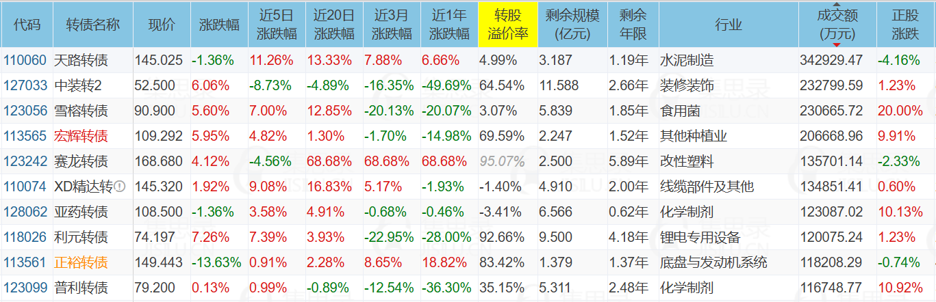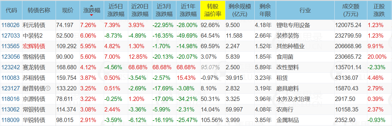 2)黄金 +4.61%,理由:黄金期货再创历史新高。代表债:恒邦转债、中金转债。