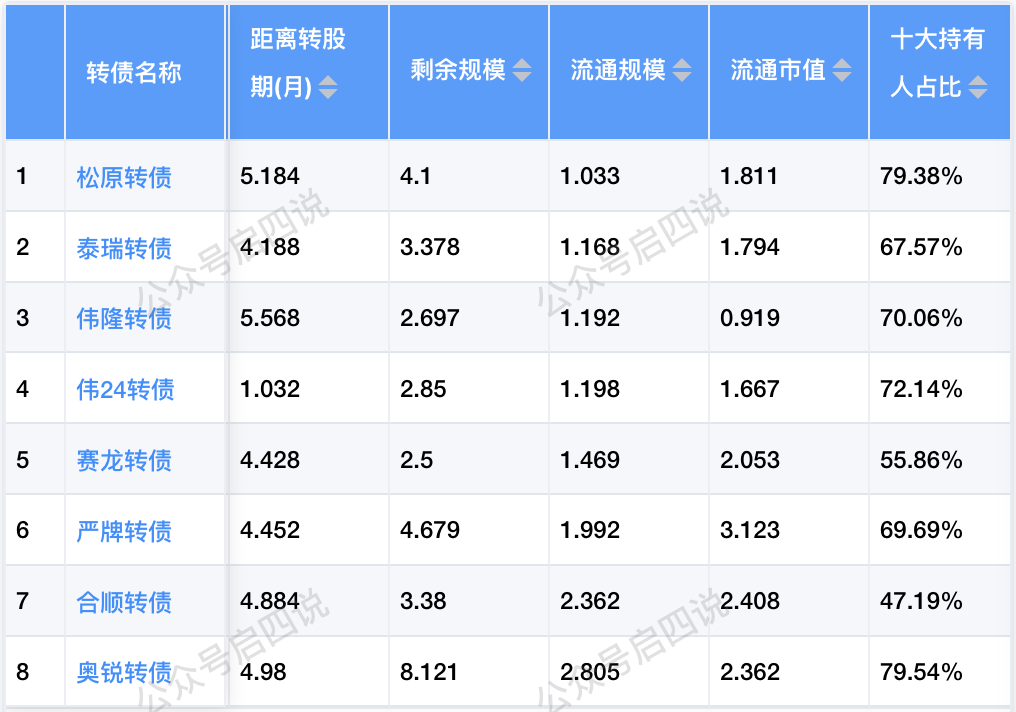 ✦重点关注配债股池: