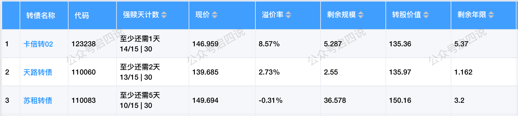 未来2周内,有3只转债可能满足强赎条件,其中卡倍转02溢价过高,需要注意风险。