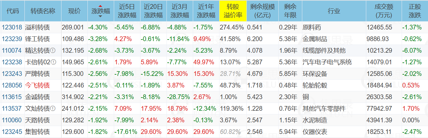 ✦今日跌停转债/正股: