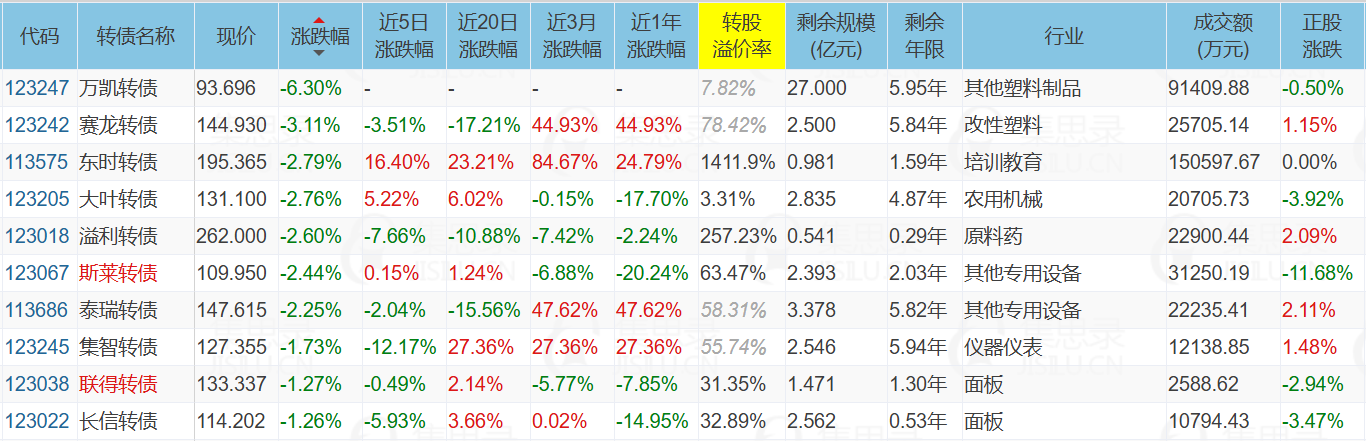 中天精装(10.01%)、漱玉平民(20.00%)、东峰集团(10.18%)、惠城转债(20.00%)、远信转债(20.00%)、万凯转债(-6.30%)