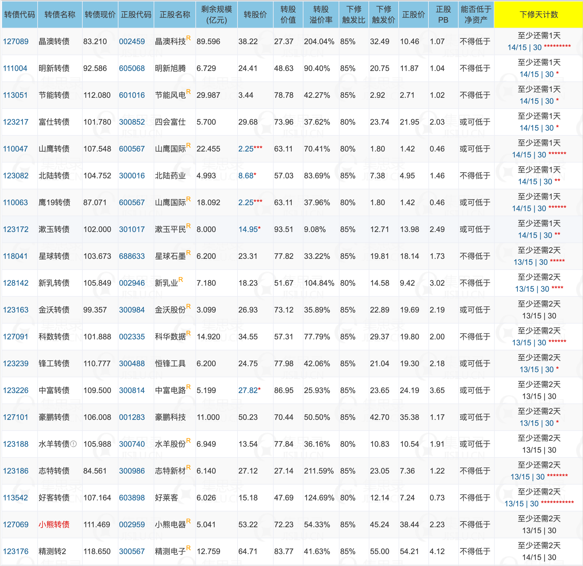 4、接下来2个交易日,将有20只转债最快可满足下修条件,其中北陆转债、山鹰转债、鹰19转债、节能转债、新乳转债、好客转债、锋工转债的下修动机较强。不过两只鹰目的是躲回售,不会下修到底。