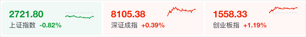 A股三大指数今日走势分化,截至收盘,沪指跌0.82%,深成指涨0.39%,创业板指涨1.19%,北证50指数涨0.03%,沪深京三市成交额5013亿元,其中沪深两市4996亿元,较上日缩量281亿元。两市超3500只个股下跌。