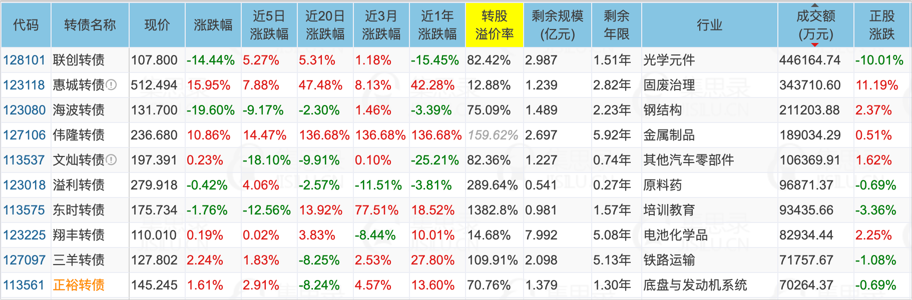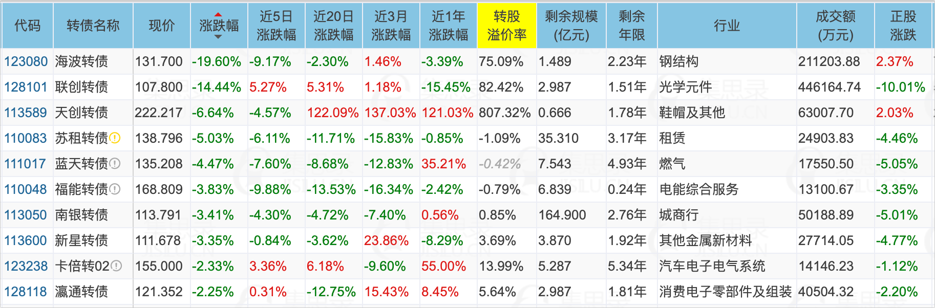 联创电子(-10.01%)、瀛通通讯(-2.20%)、海波转债(-19.60%)、惠城转债(15.95%)