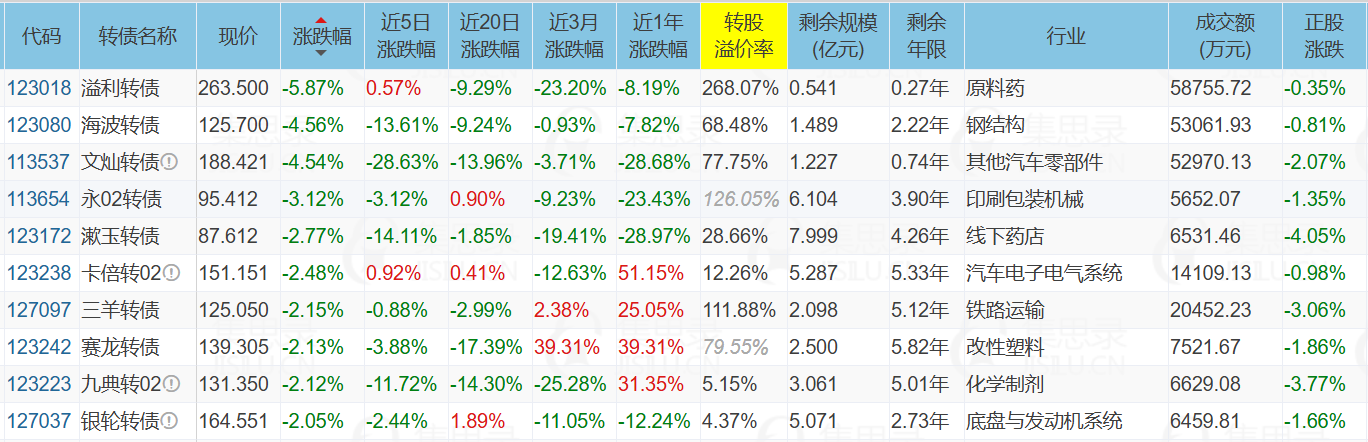 ✦今日跌停转债/正股:
