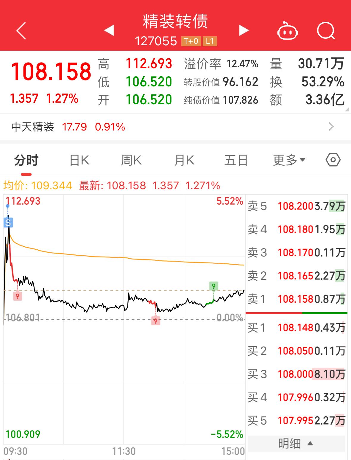 天路转债:⾄少还需2天,溢价率6.34%
