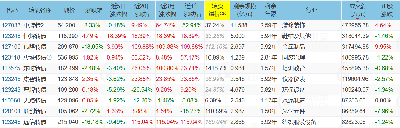 可转债等权指数,今天涨幅-0.70%,中位数105.791元,位于四星级估值区,成交额369.59亿。