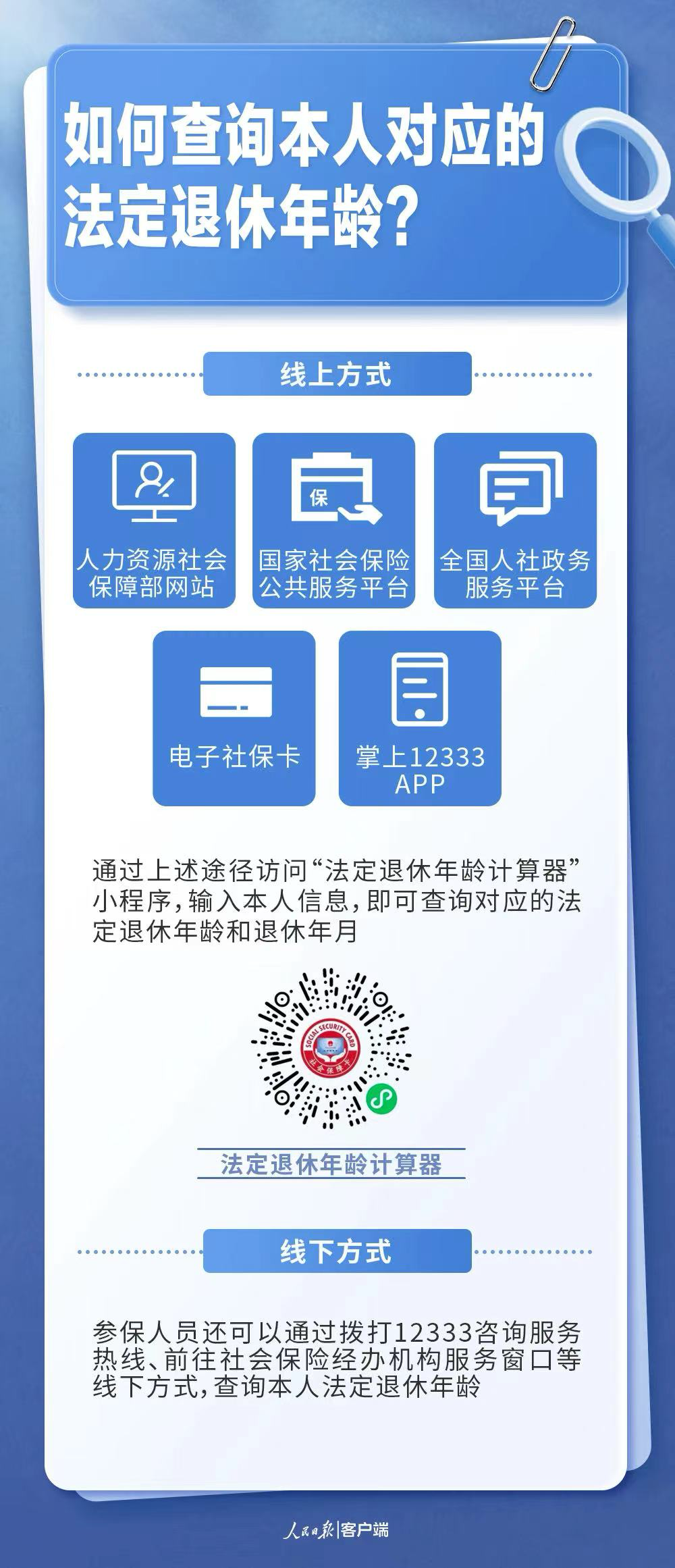 通过哪些渠道可以查询本人对应的法定退休年龄?