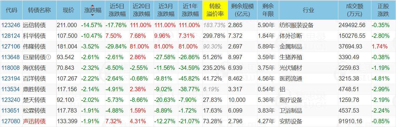 其中昌红转债、威派转债溢价率更高,规模更大,且近期不会下修,可以考虑替换到斯莱转债上面。