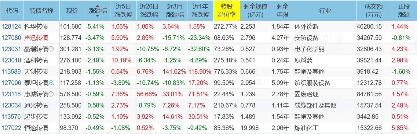 代表债:伟22转债、惠城转债、旺能转债