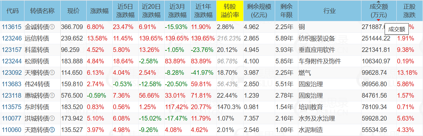 3、成交额榜前十
