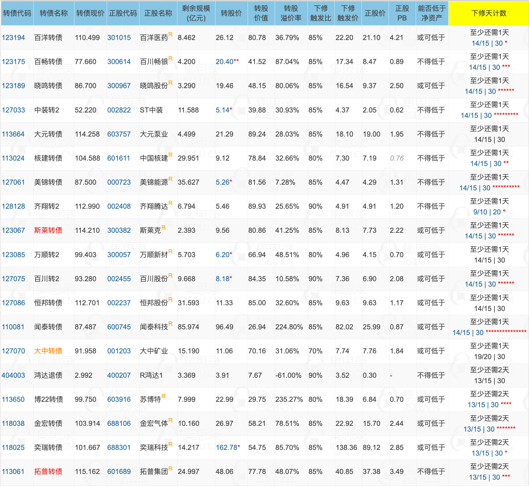 ✦重点关注配债股池: