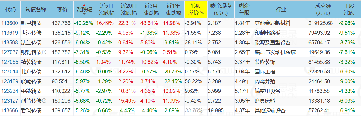 ✦今日跌停转债/正股: