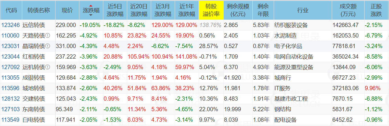 重庆建工(9.97%)、洛凯股份(-10.01%)、远信转债(-19.05%)