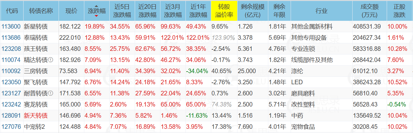 晶澳科技(10.01%)、城地香江(10.01%)、深圳新星(10.00%)、新星转债(19.89%)