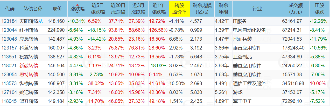 ✦今日跌停转债/正股: