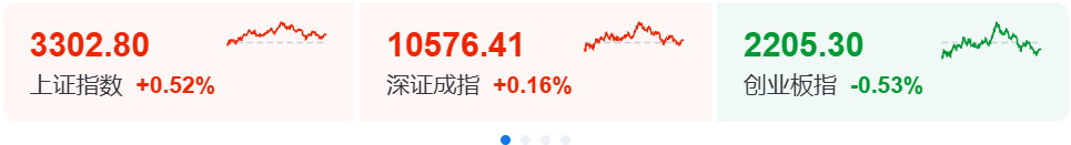 A股三大指数今日涨跌不一,截至收盘,沪指涨0.52%站上3300点,深成指涨0.16%,创业板指跌0.53%,北证50指数涨4.24%,沪深京三市成交额19648亿元,较上日放量40亿元。全市场超2700只个股上涨。