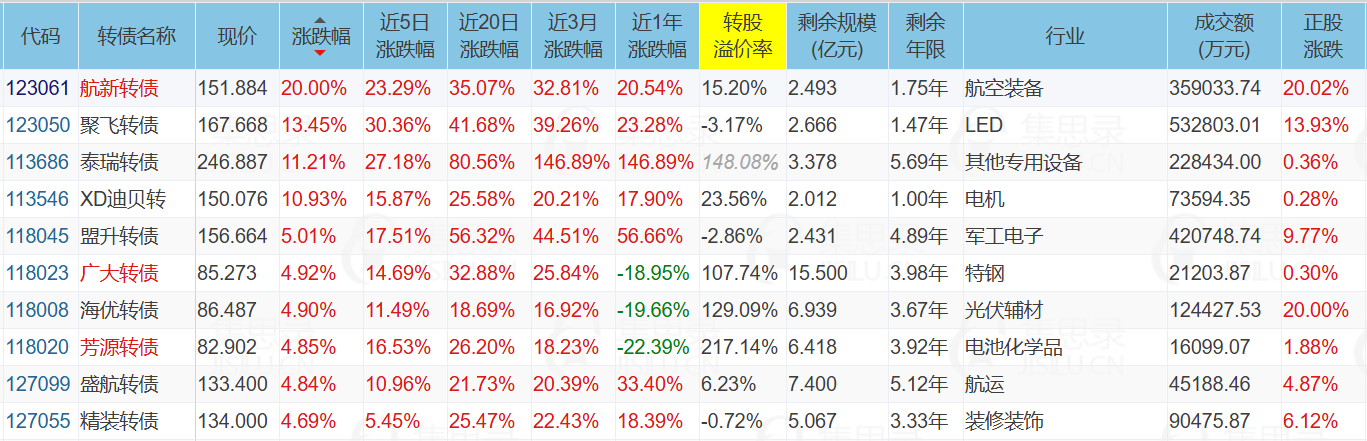 代表债:航新转债、通裕转债、盟升转债、广大转债、广联转债、宏图转债