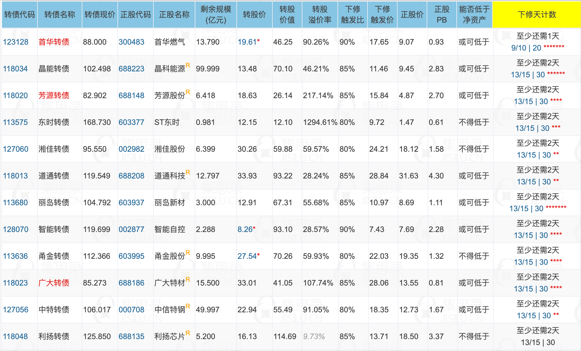 ✦重点关注配债股池: