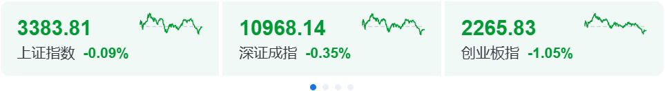 A股三大指数今日集体冲高回落,截至收盘,沪指跌0.09%,深成指跌0.35%,创业板指跌1.05%,北证50指数涨3.59%,全市场成交额26241亿元,较上日放量2734亿元。全市场超2700只个股上涨。