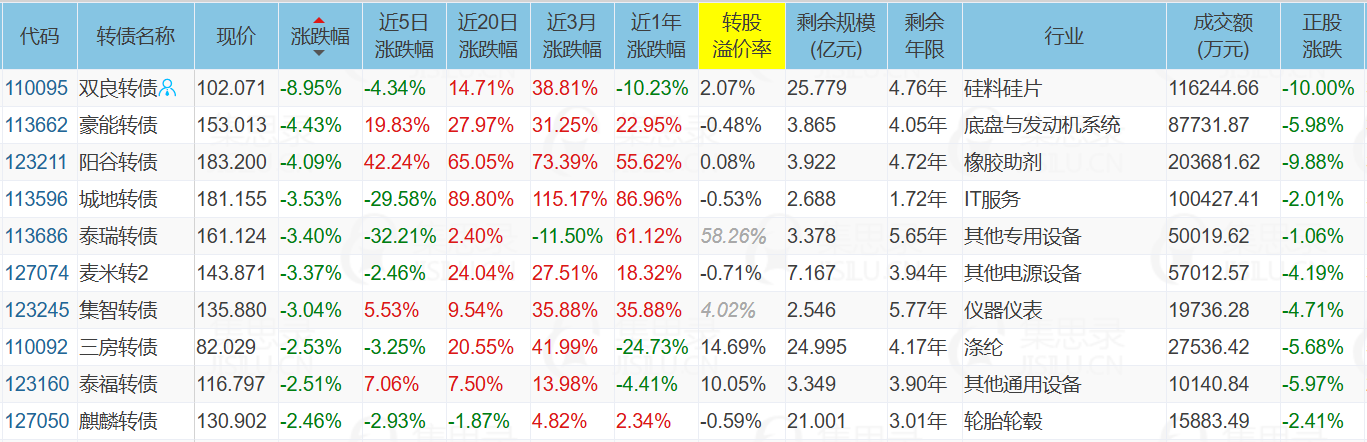 ✦今日跌停转债/正股: