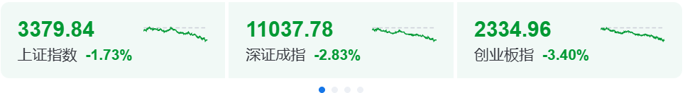 A股三大指数今日集体重挫,截至收盘,沪指跌1.73%,深成指跌2.83%,创业板指跌3.40%,北证50指数跌2.25%,全市场成交额18712亿元,较上日缩量1706亿元。全市场超4800只个股飘绿。