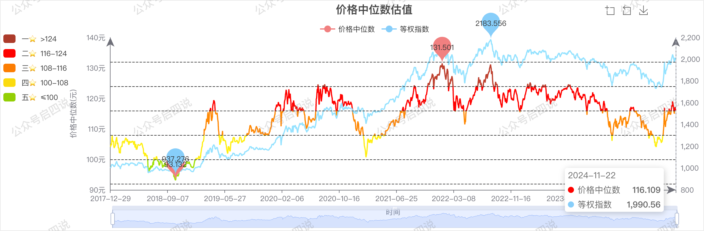 当前中位数: 116.109,当前相对上周上涨0.334元,位于二星级估值区