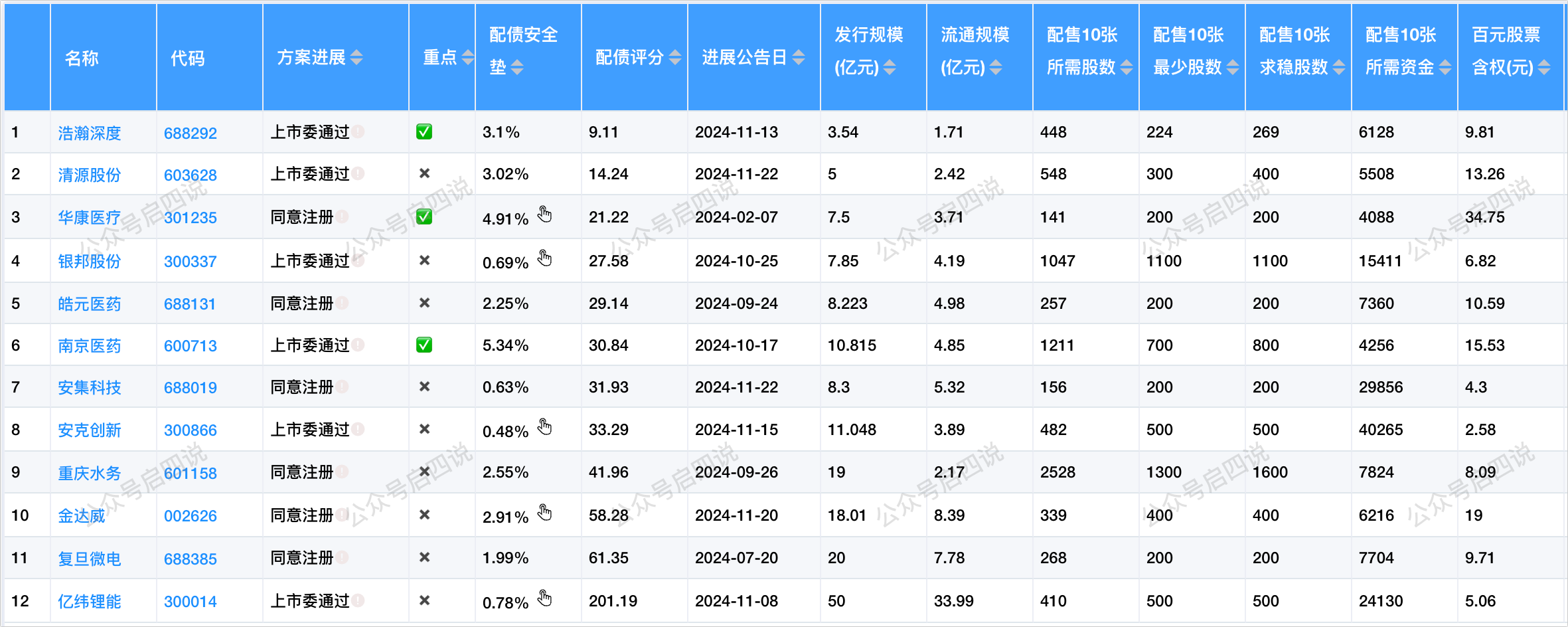 目前还有12只配债股在同意注册或上市委通过阶段,在等待发行中。