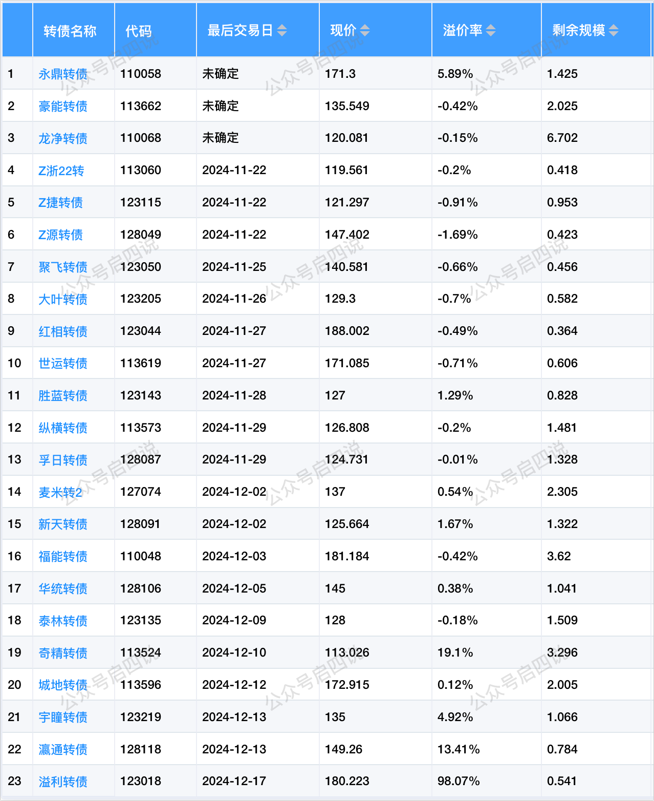 有23只转债已经公告强赎或者临近到期了,如果持有,记得关注最后交易日。