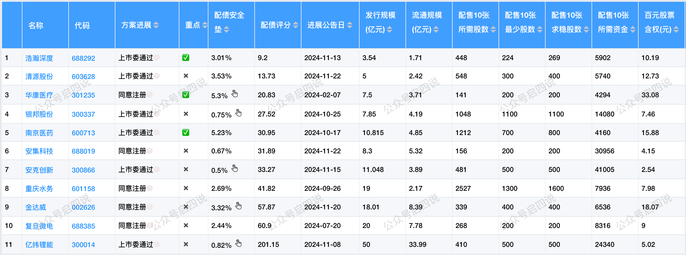 目前还有11只配债股在同意注册或上市委通过阶段,在等待发行中。