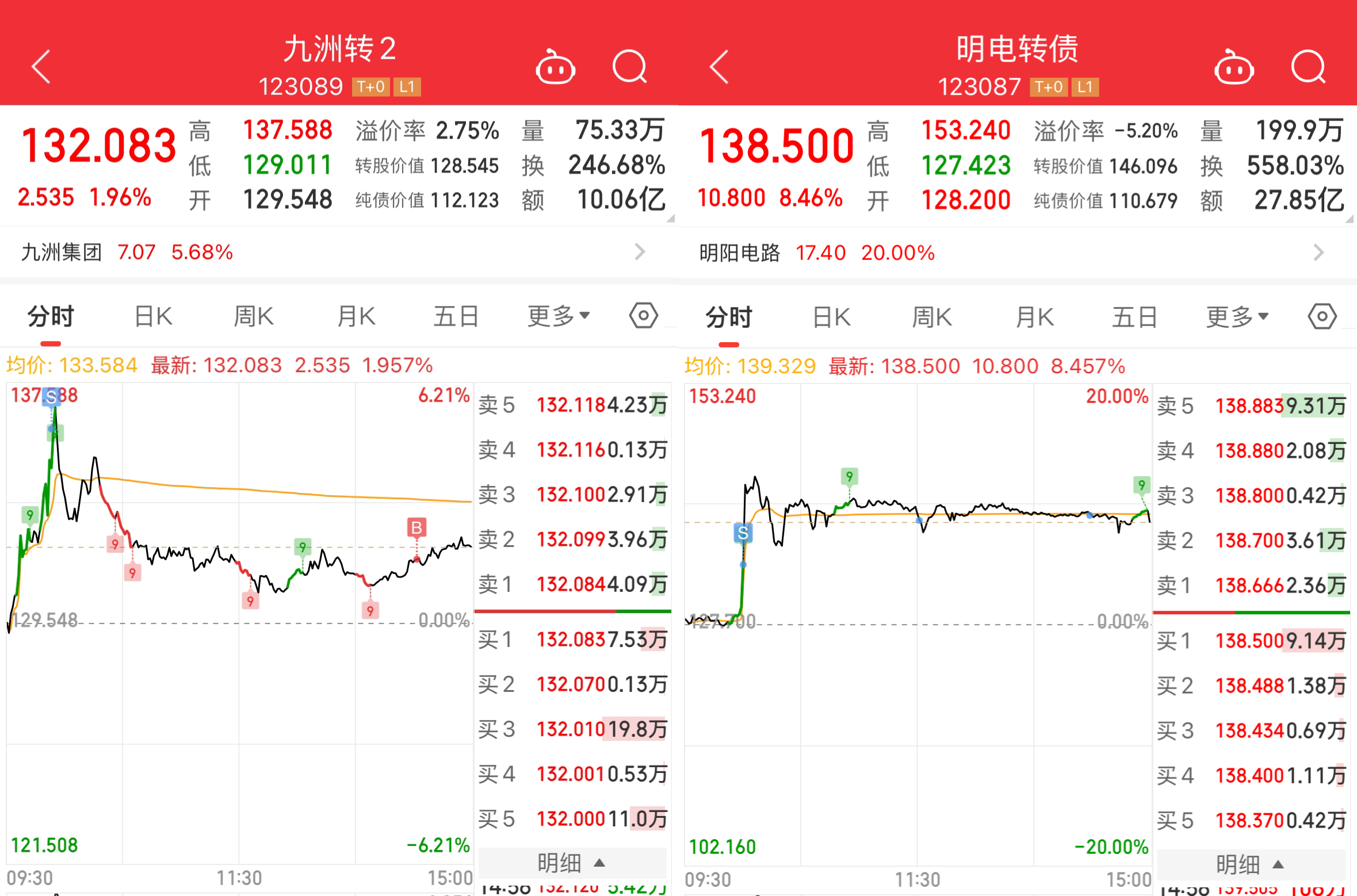 今天轮动策略抓到两只肉,九洲转2高位减仓尾盘接回,明电转债均价135.622清仓了。
