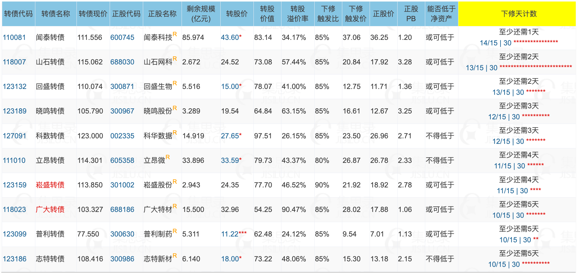 还有9只转债已经公告强赎或者临近到期了,如果持有,记得关注最后交易日,若错过就只能转股,若因为没有创业板/科创板权限导致不能转股,就只能承担血亏的后果。