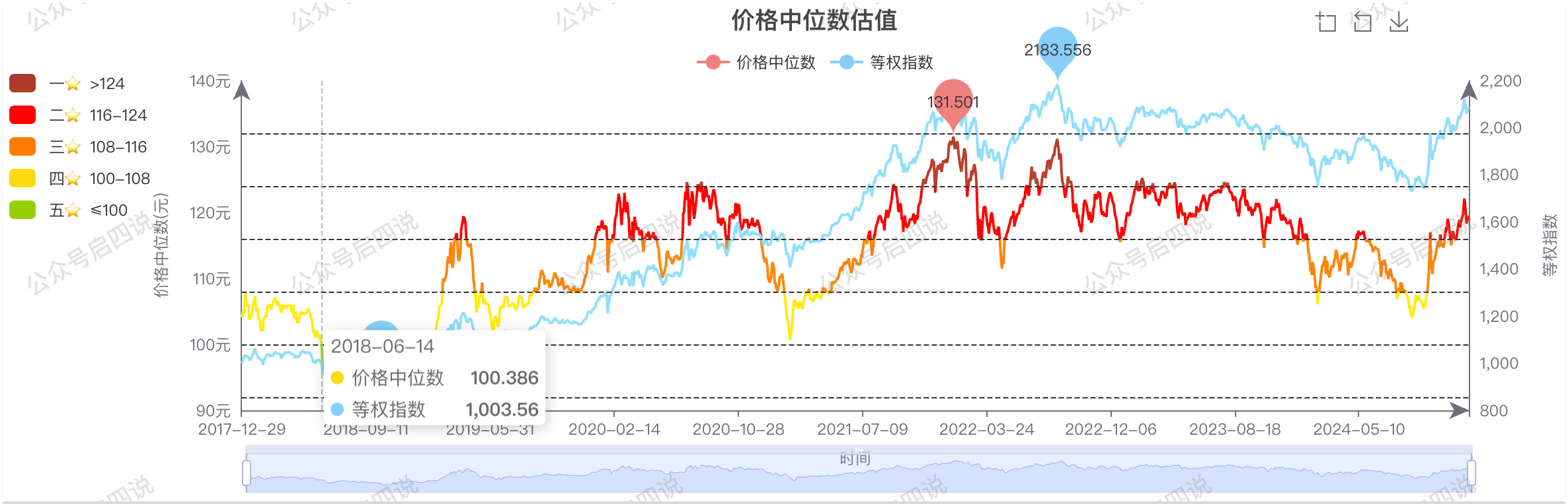当前中位数:119.456,当前相对上周下跌1.675元,位于二星级估值区