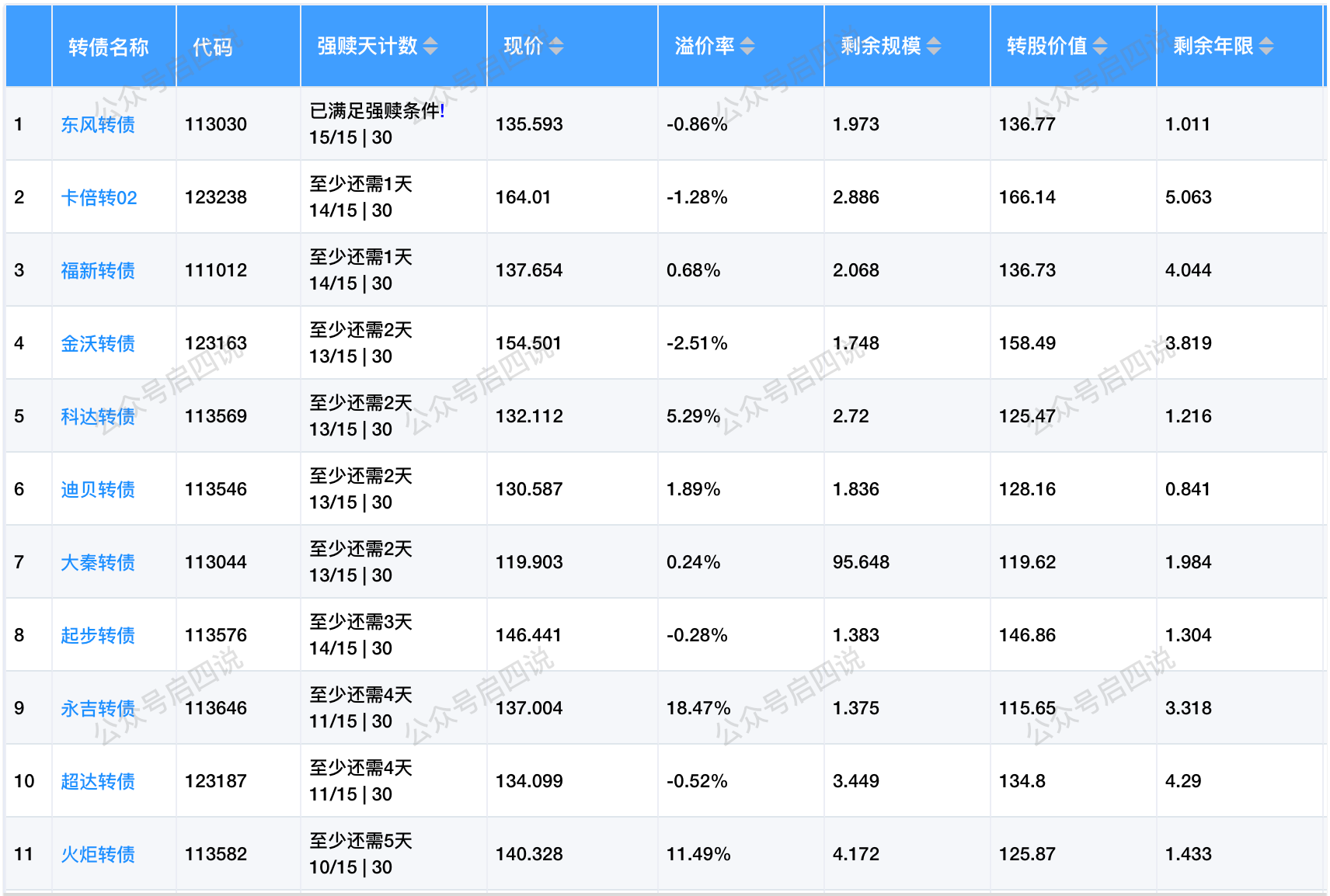 其中规模大于3亿,或溢价率大于5%的转债,需要注意强赎后杀溢价的风险。