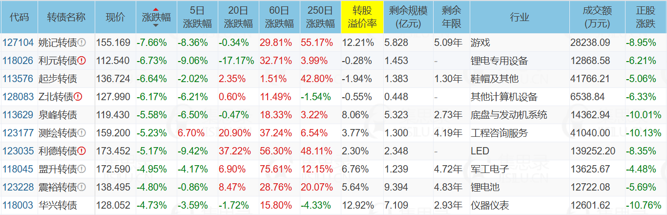 ✦今日跌停转债/正股: