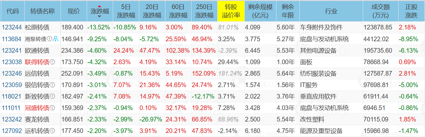 ✦今日跌停转债/正股: