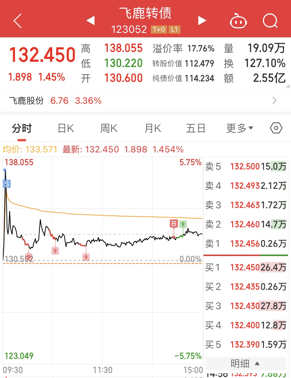 飞鹿转债,今天再次被轮动策略捕捉到了,吃到了小肉。盘中最高涨幅5.75%,差不多刚好卖在最高位,尾盘又进行了接回。
