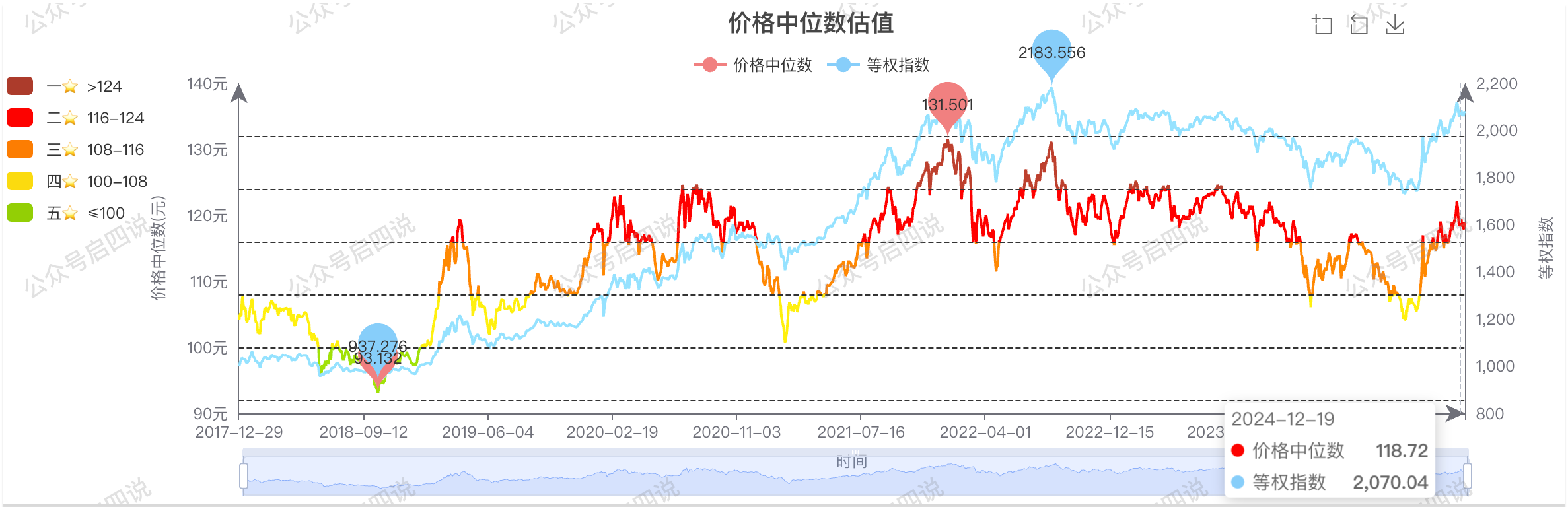 当前中位数: 118.883,当前相对上周下跌0.573元,位于二星级估值区