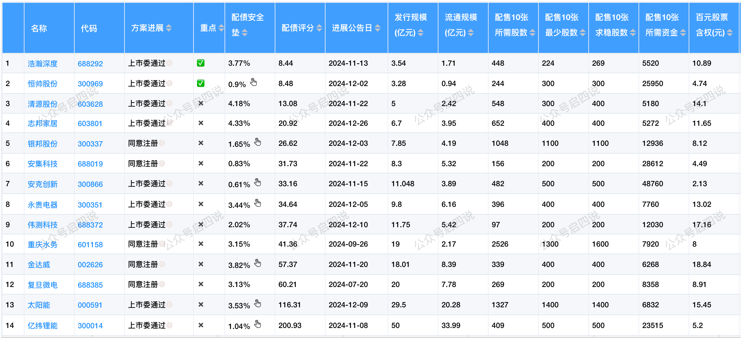 目前还有14只配债股在同意注册或上市委通过阶段,在等待发行中。