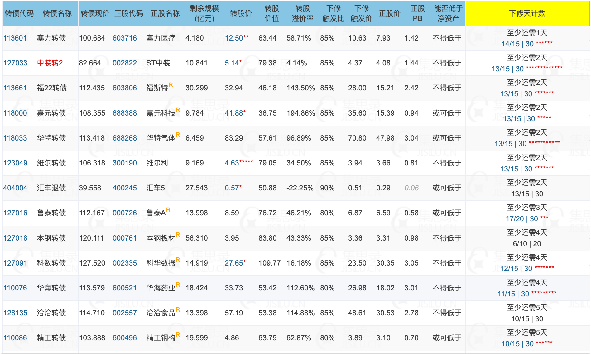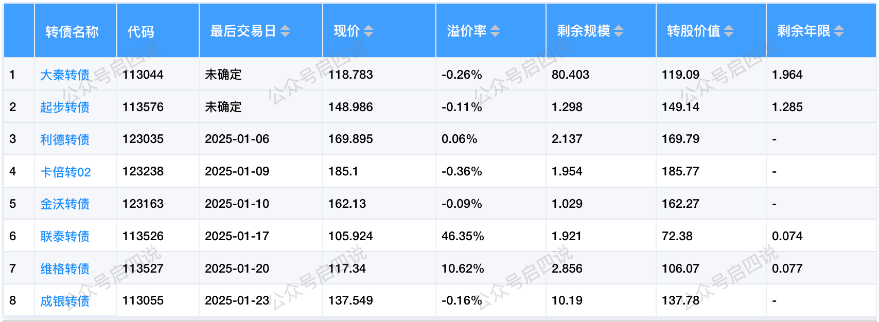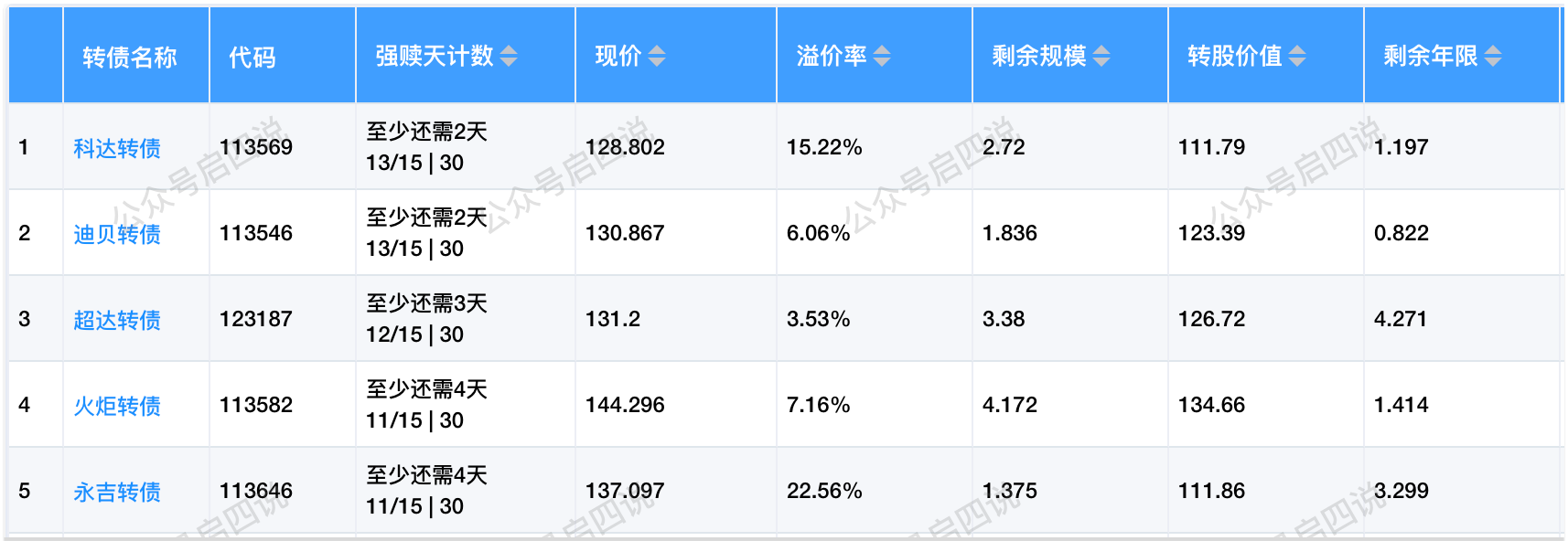 其中转股价值大于130元,且规模大于3亿或溢价率大于5%的转债,需要注意强赎后杀溢价的风险。