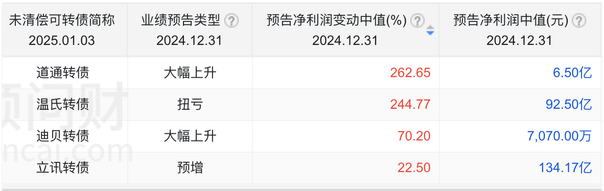 转债方面,目前年报预增的有4只转债,分别是:道通转债、温氏转债、迪贝转债、立讯转债。大家可以关注一下。