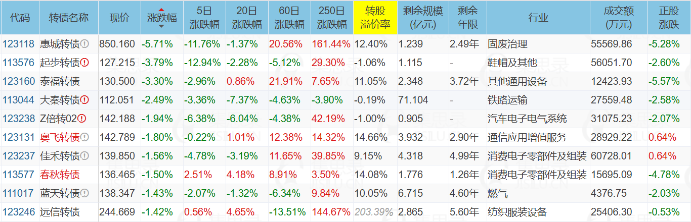 ✦今日跌停转债/正股: