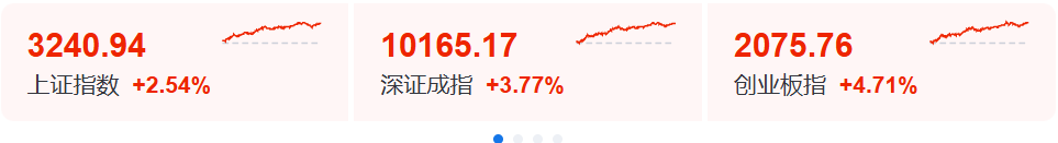 A股三大指数今日集体上涨,截至收盘,沪指涨2.54%重返3200点,深成指涨3.77%,创业板指涨4.71%,北证50指数大涨10.77%。全市场成交额13720亿元,较上日放量3958亿元。全市场超5300只个股上涨。