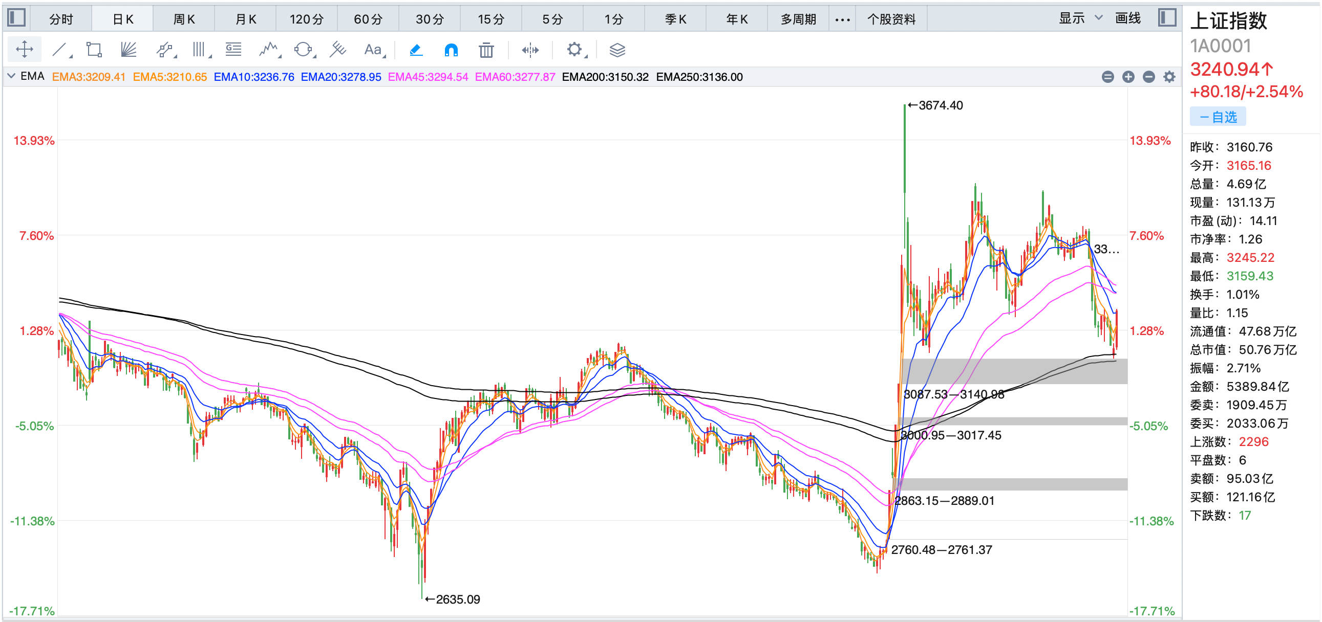 2、各大指数已经踩到关键支撑位,日线踩到了年线,周线踩到了长期均线组,如果破掉的话,那上行趋势就彻底打破了,这显然不是上面想看到的,因此短期下行空间很有限了。