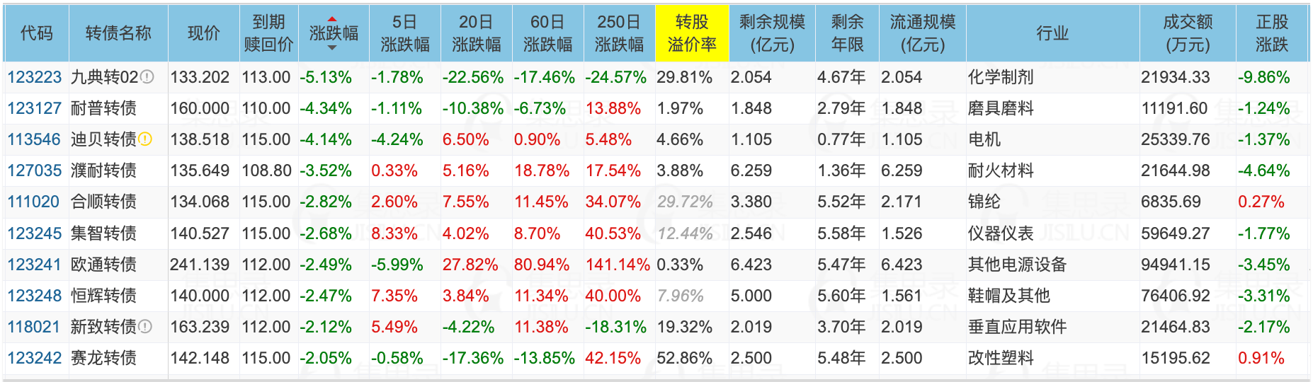 ✦今日跌停转债/正股: